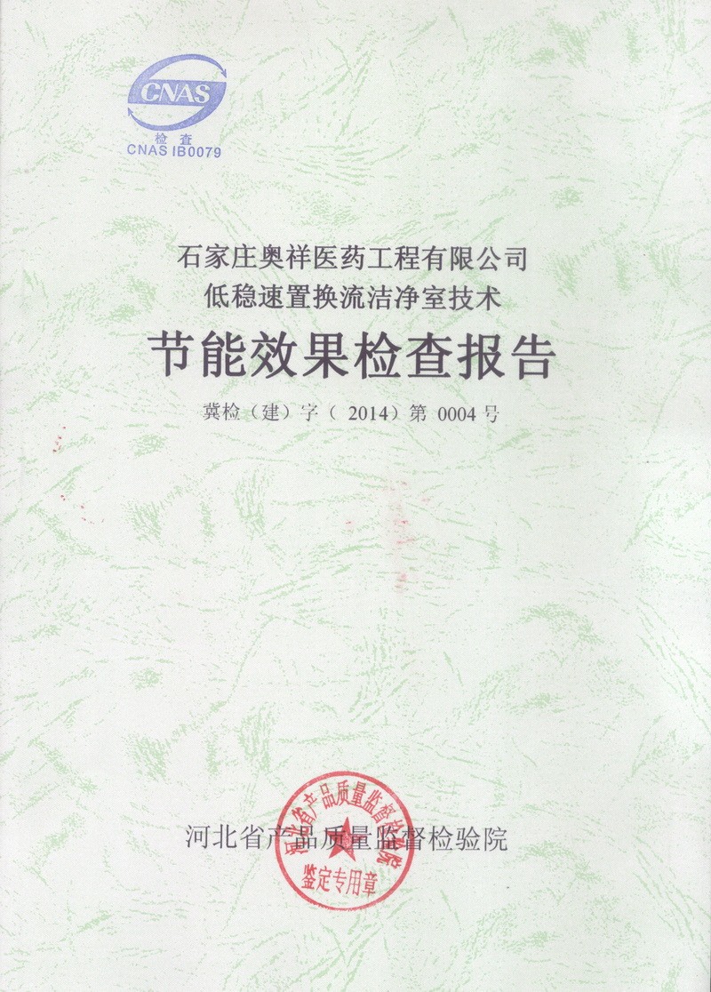 石家莊奧祥“低穩(wěn)速置換流潔凈室技術(shù)”節(jié)能報(bào)告經(jīng)相關(guān)部門評定,給出了評定結(jié)論。摘要如下: